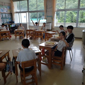 12/5(金)2~4校時にかけて「お魚教室」がありました。熊毛支庁の方や島内の漁師さん,お魚マイスターの資格を持っている河東司書の指導の下,魚や漁業について学びました。そのあと,一本釣りで釣り上げた10kgのカンパチを3枚おろしにする実演を見学し,カンパチのプライやトビウオのギョロッケを調理し,みんなでおいしく食べました。屋久島の自然がもたらす海の恵みを存分に味わうことができ故郷のよさを再認識できた1日になりました。